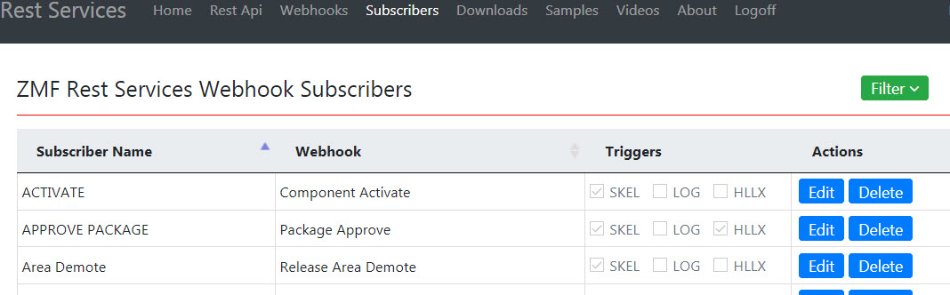 Subscriber Flow Definition - Sample Screen Prints Sample screen prints of a Subscriber flow definition are shown below: Partial List webhooks subscribers panel example Example of a Component Checkout Subcription Example showing a partial drop down list of Events that might be subscribed to